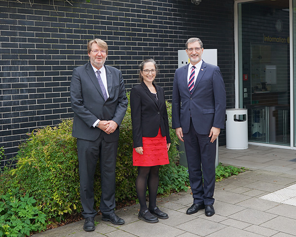 Mehmet Akif İnam, Generalkonsul der Republik Türkei in Mainz, besuchte im Rahmen seines Antrittsbesuchs die Universität. Er wurde von Rektorin Prof. Dr. Constanze Janda und Prorektor Prof. Dr. Ulrich Stelkens empfangen. Im Mittelpunkt des Austauschs standen die internationale Ausrichtung der Universität, Fragen der Verwaltungsmodernisierung sowie mögliche Anknüpfungspunkte für eine zukünftige Zusammenarbeit. Generalkonsul İnam leitet seit dem 1. Januar 2024 das Generalkonsulat der Republik Türkei in Mainz. Der in Rüsselsheim geborene Diplomat studierte Internationale Beziehungen an der Technischen Universität des Nahen Ostens (ODTÜ) und war zuvor in verschiedenen diplomatischen Vertretungen sowie im türkischen Außenministerium tätig. Der Besuch bot beiden Seiten die Gelegenheit, erste Kontakte zu knüpfen und über künftige gemeinsame Projekte nachzudenken.