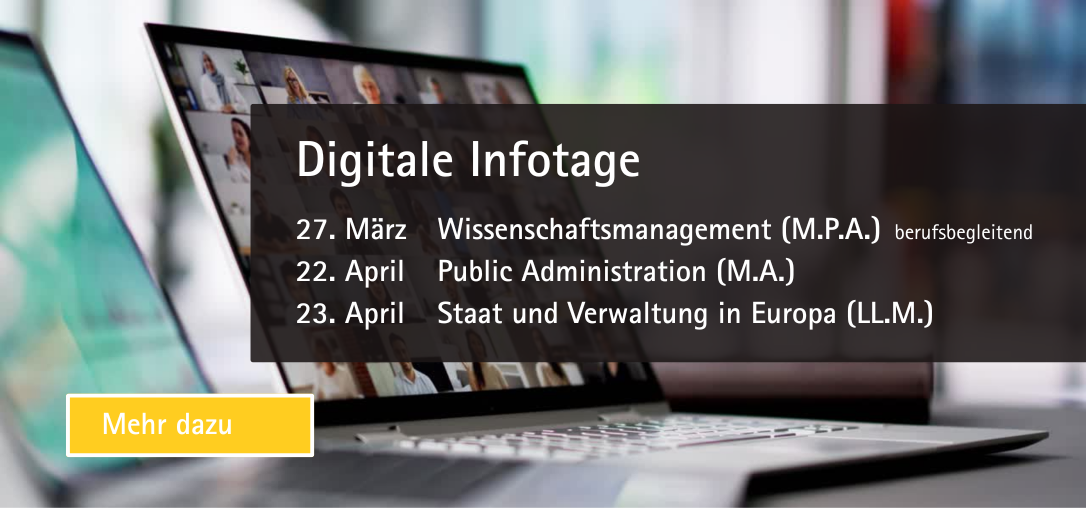 Der interdisziplinär ausgerichtete Masterstudiengang wendet sich vornehmlich an Absolventinnen und Absolventen von Bachelor-Studiengängen der Politik-, Sozial-, Wirtschafts- oder Rechtswissenschaft mit überdurchschnittlichen Studienabschluss, die eine Qualifikation insbesondere für leitende Funktionen im öffentlichen Dienst von der kommunalen bis zur überstaatlichen Ebene oder auch in Wirtschafts- oder Beratungsunternehmen anstreben. Mehr