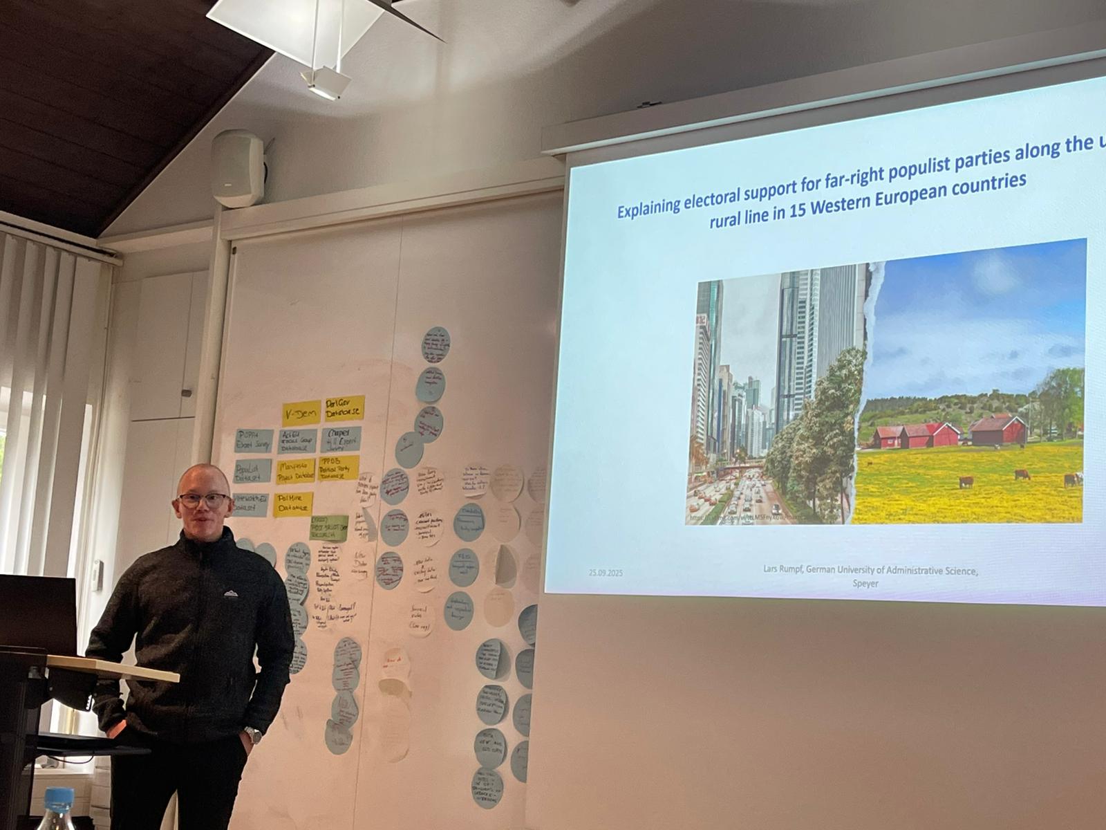Am 20. und 21.02. nahm Lars Rumpf an der 18. Jahrestagung des Forum Junge Staats-, Verwaltungs- und Policy-Forschung (FoJuS) in Bochum teil. Er präsentierte ein Papier zu Parteipositionen in der Agrar-Klimapolitik, das er gemeinsam mit Dr. Johanna Künzler und Prof. Dr. Colette Vogeler geschrieben hat. Darin untersuchen sie im europäischen Vergleich, wie politische Parteien den komplexen Nexus von Landwirtschaft und Klimawandel in ihren Programmen adressieren.
