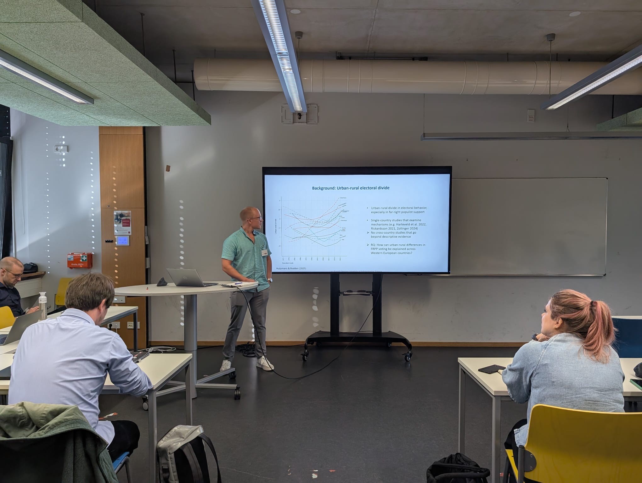 Gemeinsam mit Paul Reimers vom Lehrstuhl Prof. Grohs nahm Lars Rumpf von 20. bis 23.05. an den ECPR Joint Sessions of Workshops in Prag teil. Sie stellten dort ihre Studie "Voices against the populist far right? Local political debate and the AfD in German district councils" vor, in der sie untersuchen, wie etablierte politische Parteien in Kreistagen rhetorisch auf die populistische Herausforderung durch die AfD reagieren. Ihre Präsentation war Teil des Workshops "Political Parties and Politics at the Local Level".
