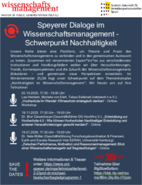 Speyerer Dialoge im Wissenschaftsmanagement – Schwerpunkt Nachhaltigkeit Unsere Reihe bietet eine Plattform, um Theorie und Praxis des Wissenschaftsmanagements zu verbinden und in den gemeinsamen…