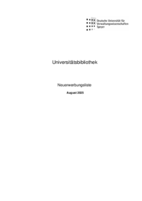 Universitätsbibliothek Neuerwerbungsliste August 2025 A Allgemeines, Rechtswissenschaft, Politische Wissenschaft, Internationale Organisationen Deutschland schafft sich ab : die Bilanz nach 15…