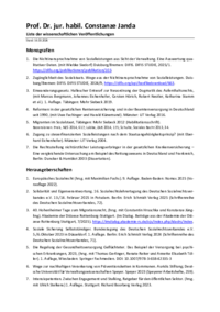 Prof. Dr. jur. habil. Constanze Janda Liste der wissenschaftlichen Veröffentlichungen Stand: 22.09.2025 Monografien 1. Die Nichtinanspruchnahme von Sozialleistungen aus Sicht der Verwaltung. Eine