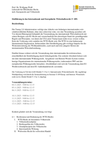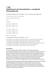 V 109 Einführung in das internationale u. europäische Wirtschaftsrecht Vorlesung im Rahmen des LLM Moduls V (Var 1): Internat. Wirtschaftsrecht Veranstaltungstyp: Präsenz-Veranstaltung…