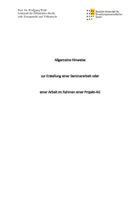 Prof. Dr. Wolfgang Weiß Lehrstuhl für Öffentliches Recht, insb. Europarecht und Völkerrecht Allgemeine Hinweise zur Erstellung einer Seminararbeit oder einer Arbeit im Rahmen einer Projekt-AG …