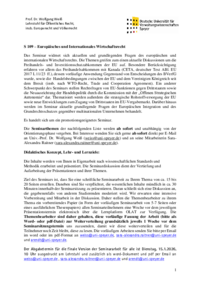 Prof. Dr. Wolfgang Weiß Lehrstuhl für Öffentliches Recht, insb. Europarecht und Völkerrecht S 109 – Europäisches und Internationales Wirtschaftsrecht Das Seminar widmet sich aktuellen und…