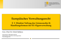 Europäisches Verwaltungsrecht § 5 Direkter Vollzug des Unionsrechts II: Handlungsformen der EU-Eigenverwaltung Univ.-Prof. Dr. Ulrich Stelkens Lehrstuhl für Öffentliches Recht, insbesondere deutsches…