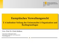 Europäisches Verwaltungsrecht § 6 Indirekter Vollzug des Unionsrechts I: Organisation und Rechtsgrundlagen Univ.-Prof. Dr. Ulrich Stelkens Lehrstuhl für Öffentliches Recht, insbesondere deutsches und…