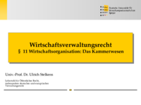 Wirtschaftsverwaltungsrecht § 11 Wirtschaftsorganisation: Das Kammerwesen Univ.-Prof. Dr. Ulrich Stelkens Lehrstuhl für Öffentliches Recht, insbesondere deutsches und europäisches Verwaltungsrecht …