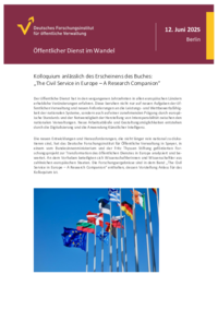 12. Juni 2025 Berlin Öffentlicher Dienst im Wandel Kolloquium anlässlich des Erscheinens des Buches: „The Civil Service in Europe – A Research Companion“ Der öffentliche Dienst hat in den…