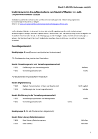Stand 21.10.2025, Änderungen möglich! Studienprogramm des Aufbaustudiums zum Magistra/Magister rer. publ. Lehrplan Wintersemester 2025/26 Die beiden zu wählenden Schwerpunkte und die…