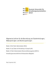 Allgemeine Leitlinie für die Beurteilung von Studienleistungen, Modulprüfungen und Abschlussprüfungen Master of Arts Public Administration (M.A.) Master of Laws Staat und Verwaltung in Europa (LL.M.)…