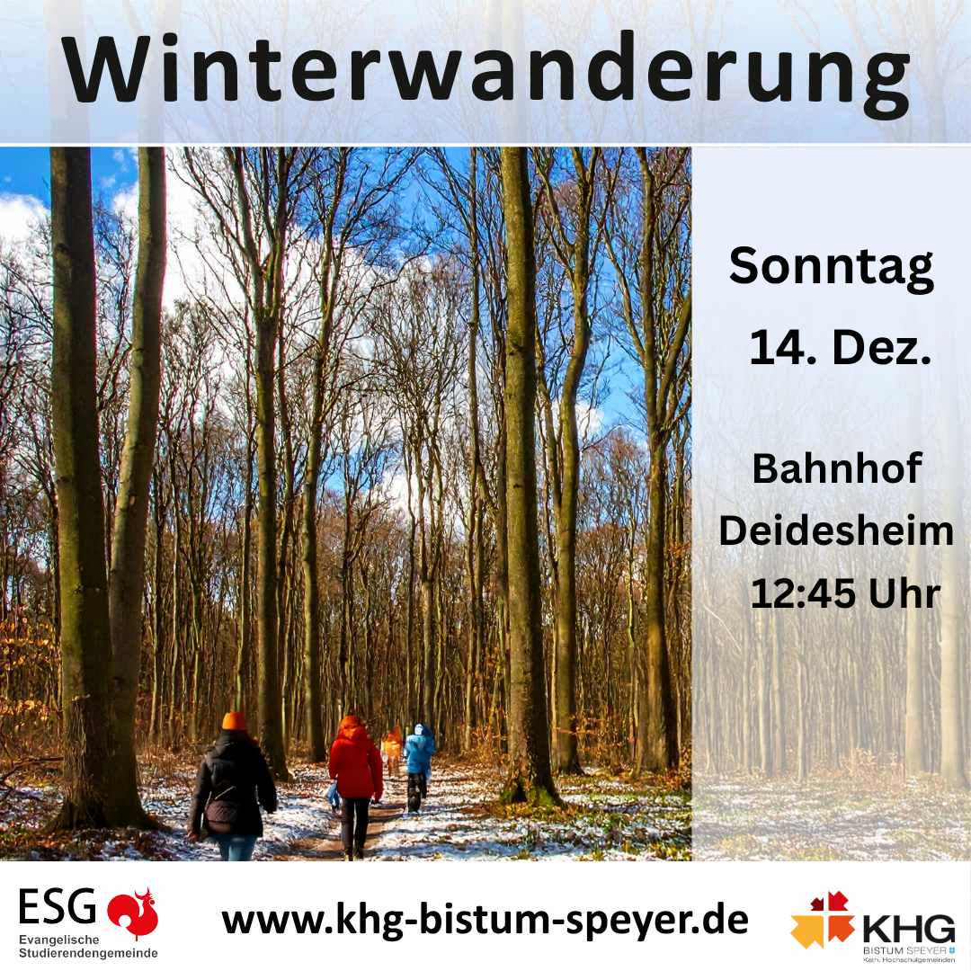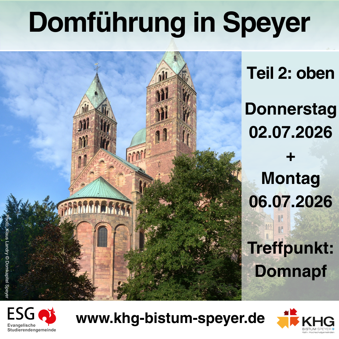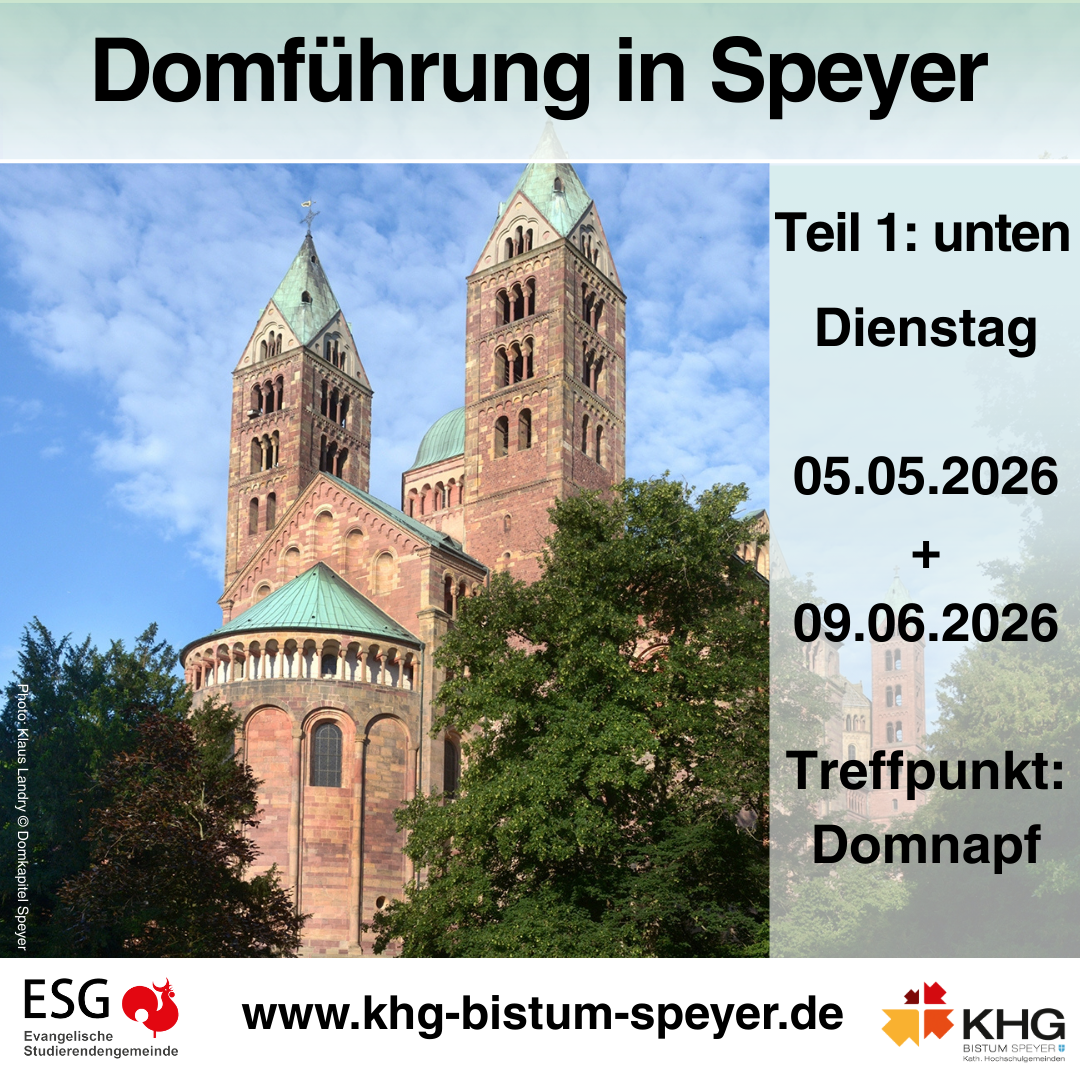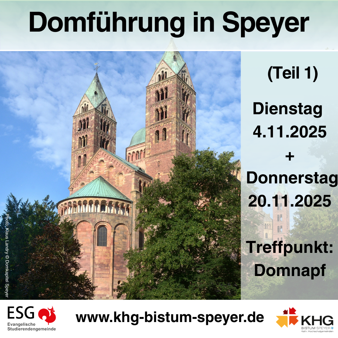 Die Katholische Hochschulgemeinde (KHG) und die Evangelische Studierendengemeinde (ESG) laden alle Studierenden (egal welcher Konfessionszugehörigkeit) zu ihrem gemeinsamen Programm ein:
